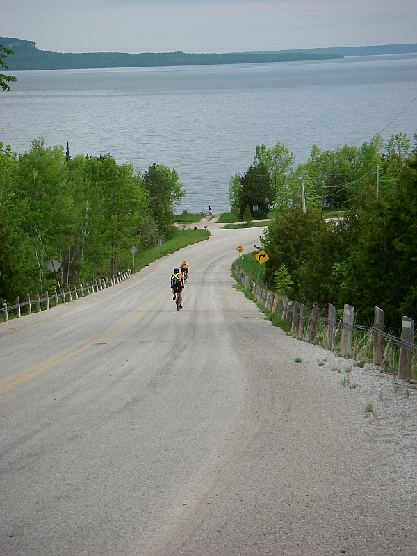 Nathan and Christian decided to skip the fancy dinner and instead, grabbed a quicky at Wendy's in Collingwood before saying good-bye. The young fellows headed out and later e-mailed me with their fantastic ride back to Port Elgin. The Scenic Cave ride to the top gave the lads a solid warm-up for the remaining hills. Approaching the Walter's Falls t-intersection, they had to share the road with 3 deer and then avoid hitting the turtle watching the show.